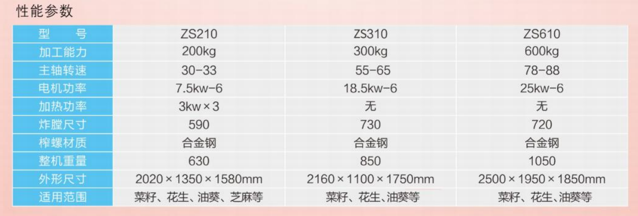 1、適合熟榨菜籽、花生、芝麻、油葵等油料;